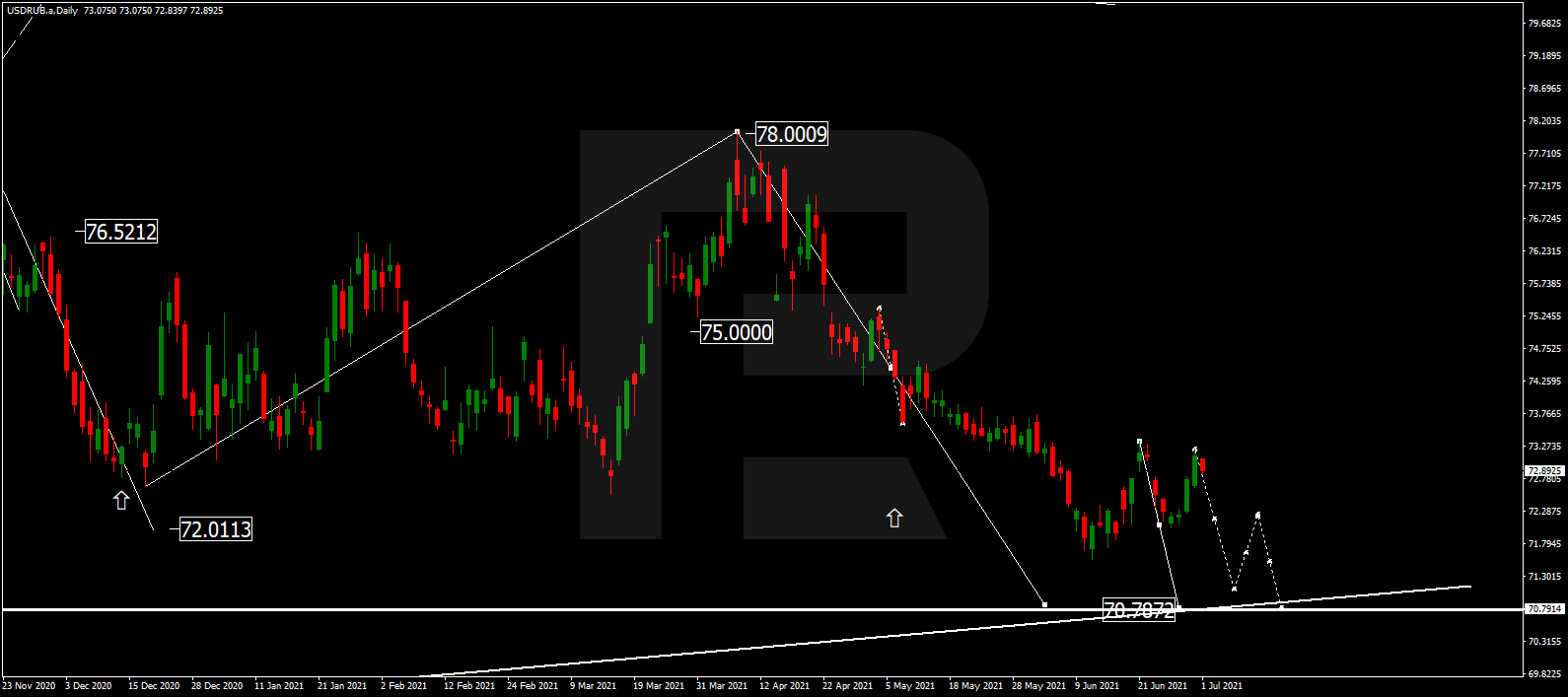 Прогноз курса валютной пары Доллар США к российскому рублю на сегодня 01.07.2021 предоставлен компанией RoboForex.
