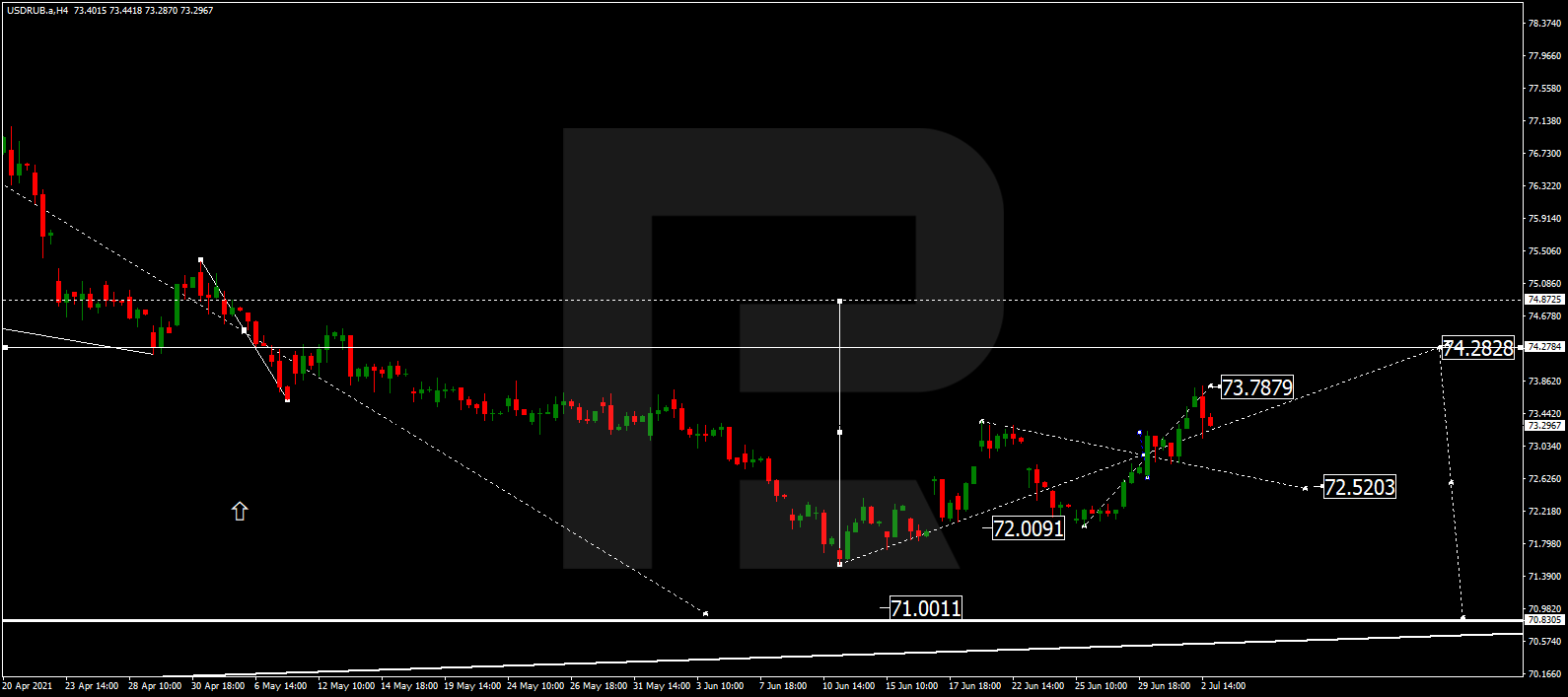 Прогноз курса валютной пары Доллар США к российскому рублю на сегодня 05.07.2021 предоставлен компанией RoboForex.
