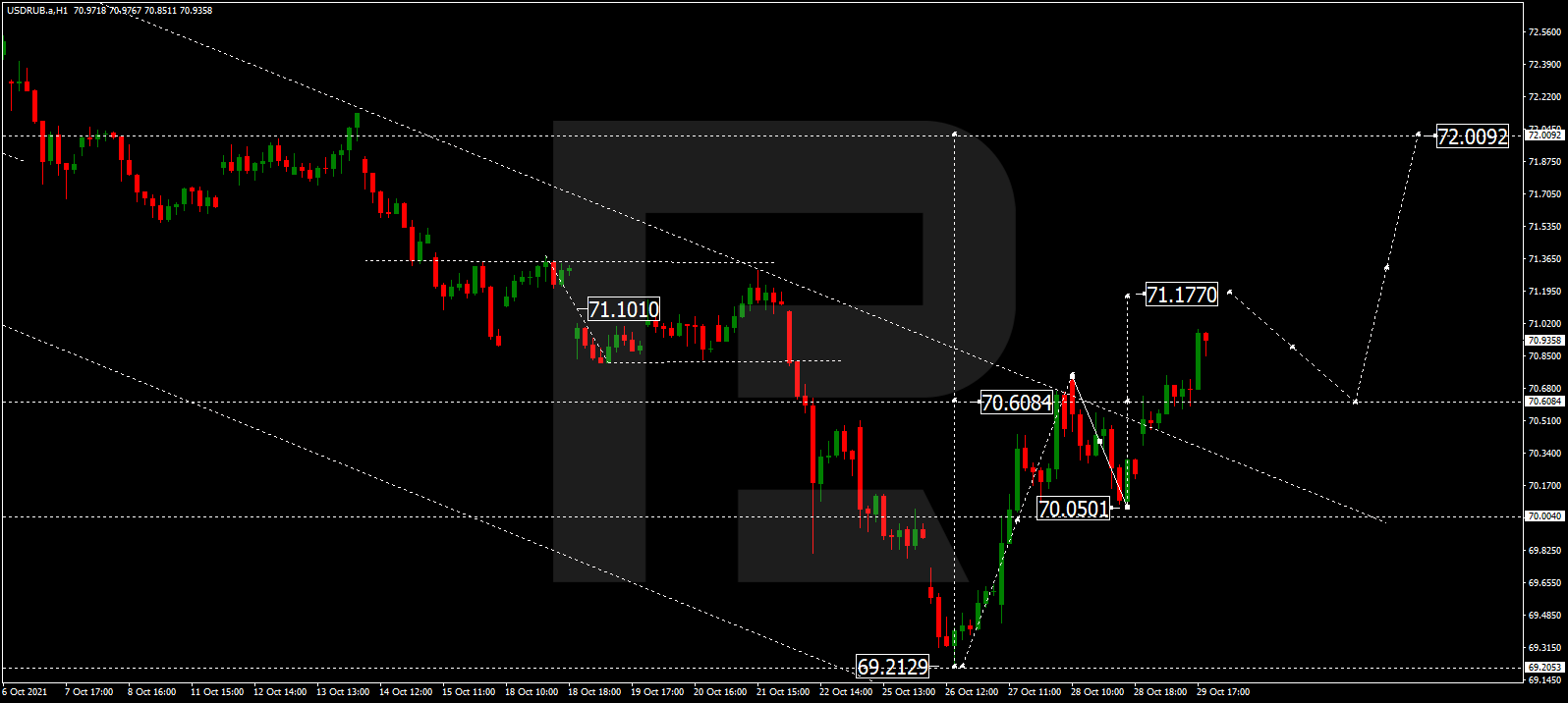 Прогноз курса валютной пары Доллар США к российскому рублю на сегодня 03.11.2021 предоставлен компанией RoboForex.
