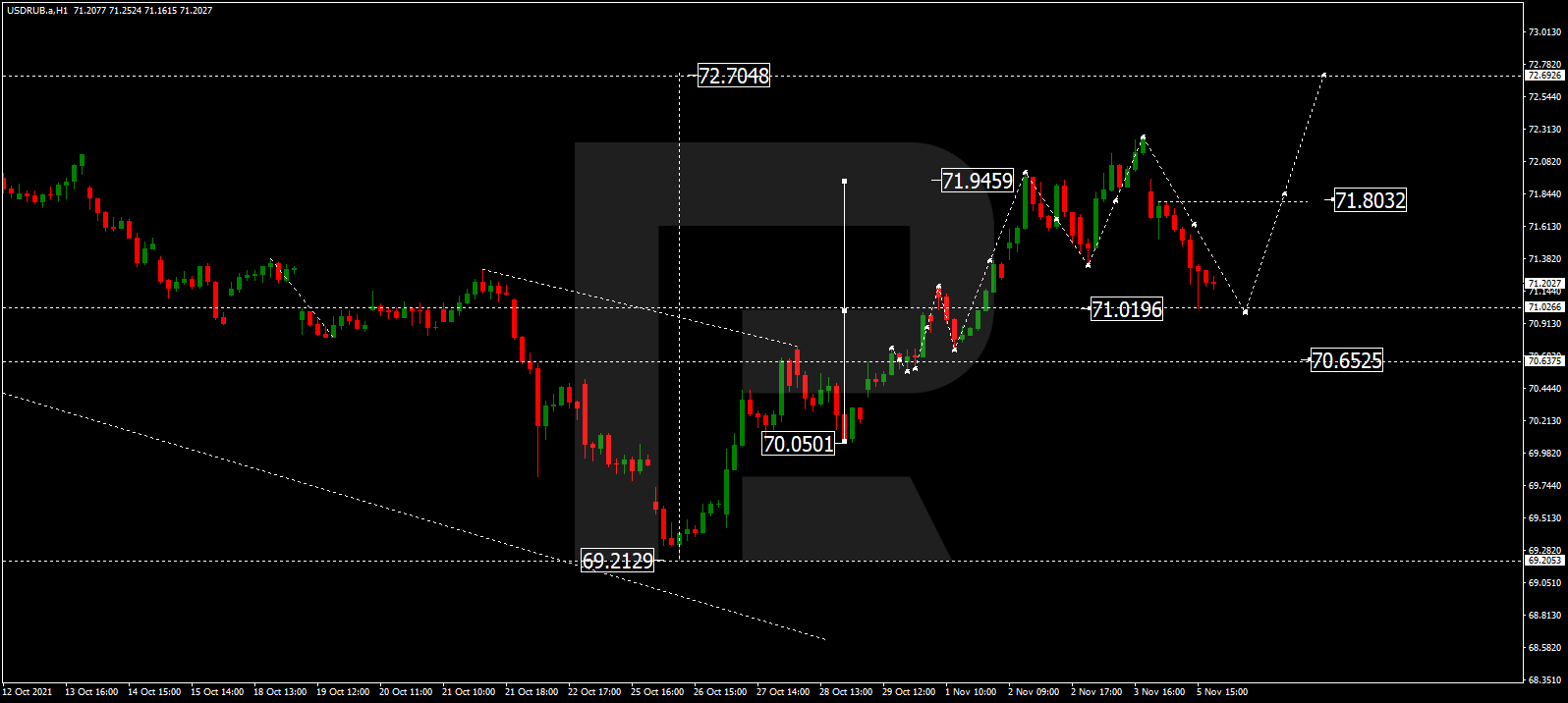 Прогноз курса валютной пары Доллар США к российскому рублю на сегодня 09.11.2021 предоставлен компанией RoboForex.