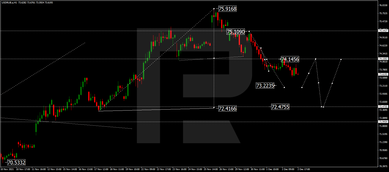 Прогноз курса валютной пары Доллар США к российскому рублю на сегодня 03.12.2021 предоставлен компанией RoboForex.