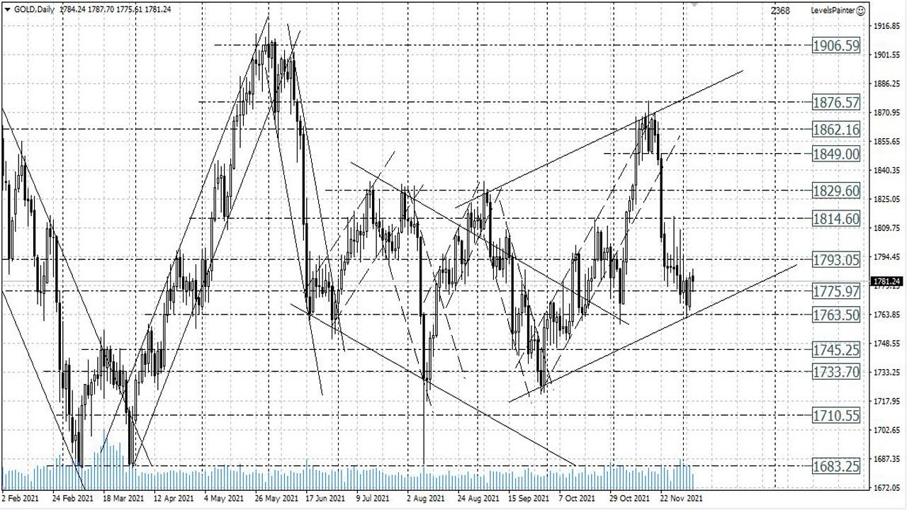 ЗОЛОТО XAUUSD – нисходящая тенденция начала останавливаться вблизи нижней грани долгосрочного восходящего канала.